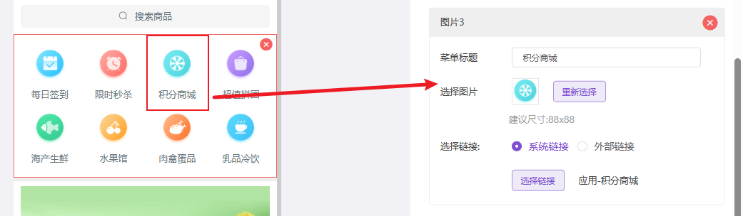• 店铺装修中, 把积分商城添加到小程序的页面中